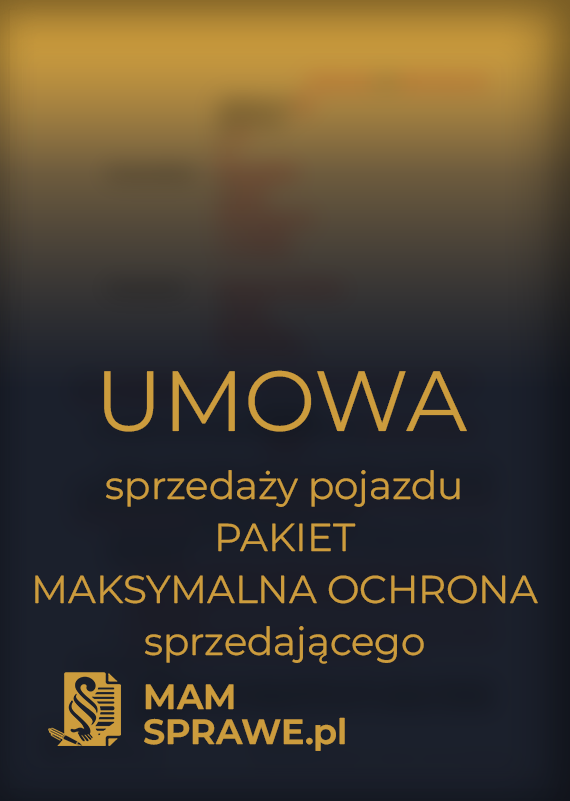Umowa sprzedaży pojazdu – zawiera rozbudowane oświadczenia stron. Maksymalnie chroni sprzedającego przed późniejszymi roszczeniami dotyczącymi stanu technicznego czy ukrytych wad (*o ile nie zostaną celowo zatajone przed sprzedającego).